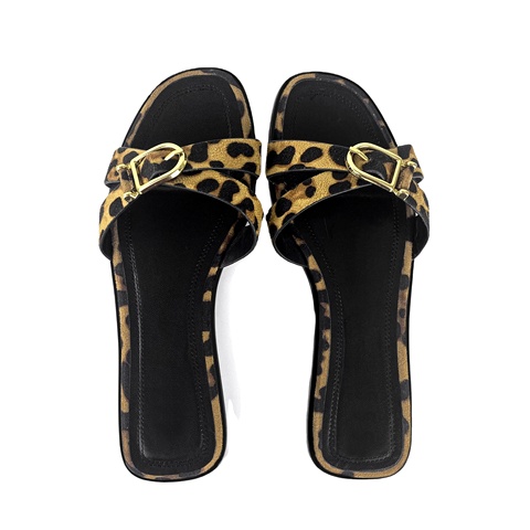 جديد تصميم الصيف المنسوجة المرأة شقة النعال اصبع القدم مفتوحة بسيطة صنادل سيدات ليوبارد طباعة عبر حزام ساندي الشاطئ الأحذية
